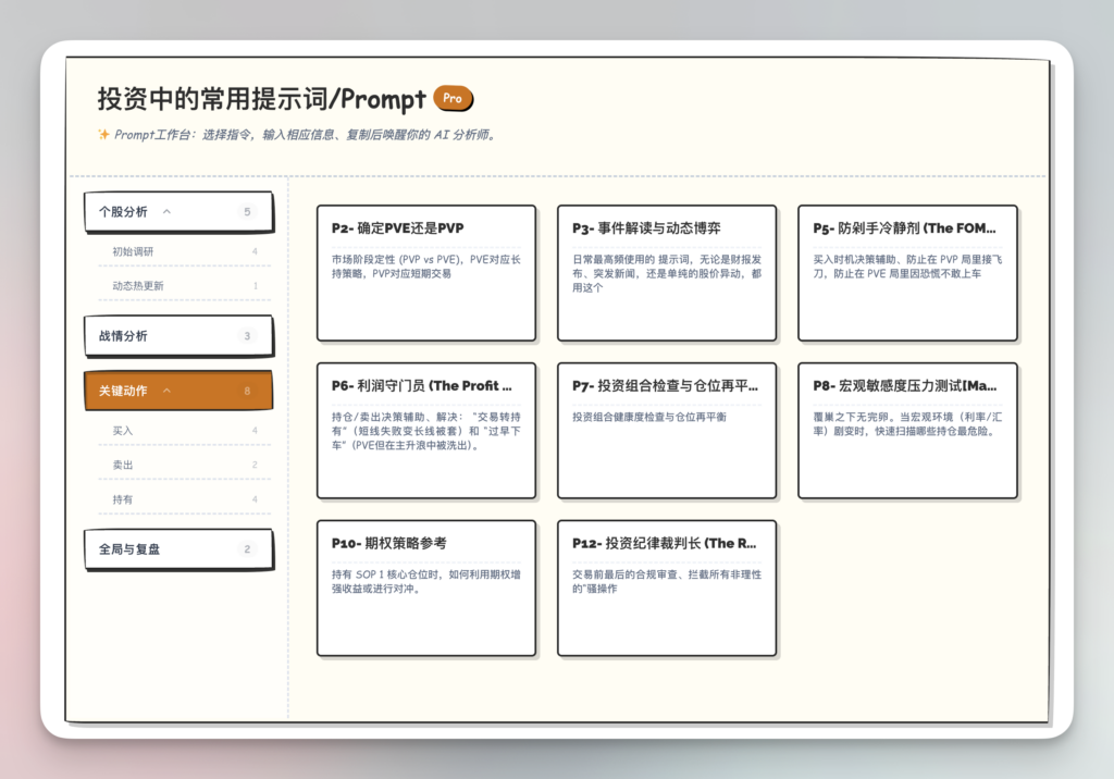 ✨ Prompt工作台:选择指令,输入相应信息、复制后唤醒你的 AI 分析师。