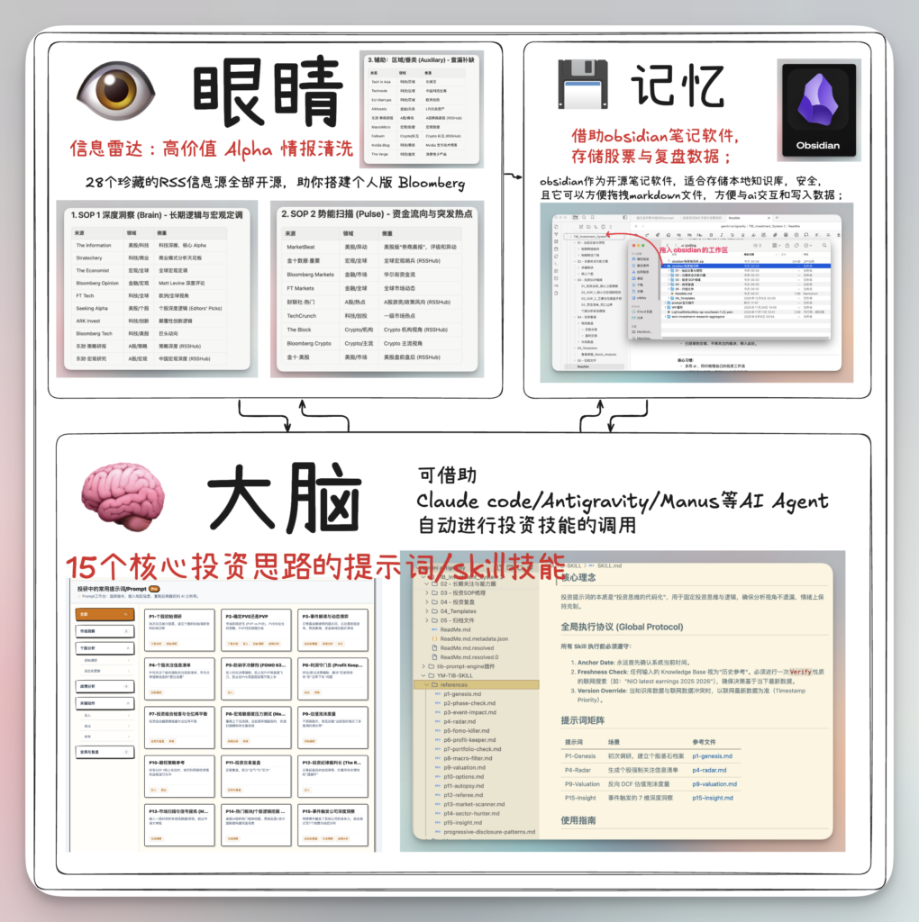 我的 AI 投资系统由三大模块构成,它们共同协作,将我的投资思维从执行层提升到了架构层: